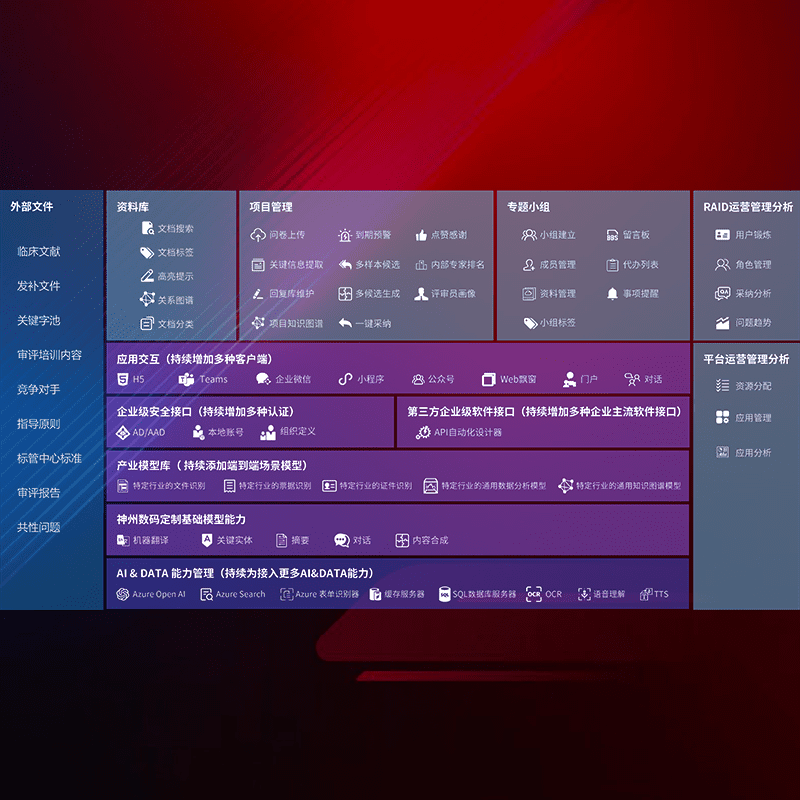 医疗器械产品上市前,,,,要熟悉严格与繁复评审标准,,,,整理分析监管机构指导文件中的海量信息。。。。企业急需一个智能化解决方案,,,,提升知识管理效率,,,,提高评审通过率,,以提升其市场竞争力。。。